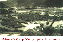 Due to the Incheon Landing Operations on September 15, 1950, the number of the captured People's Army increased surprisingly, and though P.O.W.s were interned at Geojeri in Pusan and Yeongcheon of Kyongbuk, there were regional problems on management of countless P.O.W.s, and therefore, Koje Island was selected to locate P.O.W. Camp as it is distant from the hard fought field and also is easy for transporting P.O.W.s, and the Camp was established on 3.6 million PYONG centering Gohyon Suwol District on November 27, 1950. And the Camp interned 53,588 P.O.W.s from Pusan for the first time in February 1951, 150,000 P.O.W.s of People's Army, 20,000 P.O.W.s of Red China, and 3,000 P.O.W.s of Women and Volunteer Army, and so forth 173,000 P.O.W.s in total in May. |